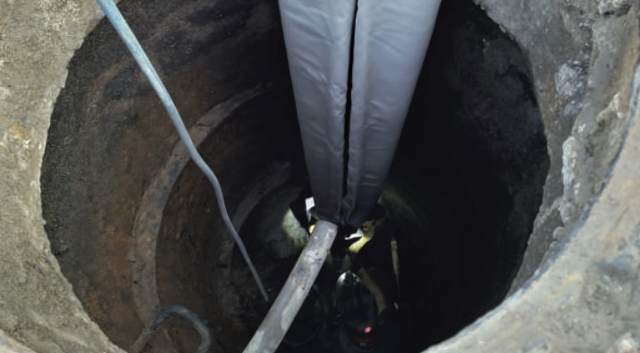 Our company carries out trenchless rehabilitation of water supply networks for drinking and industrial water, domestic and storm sewerage by rehabilitating pipelines with a flexible polymer sleeve (liner) made of fiberglass.